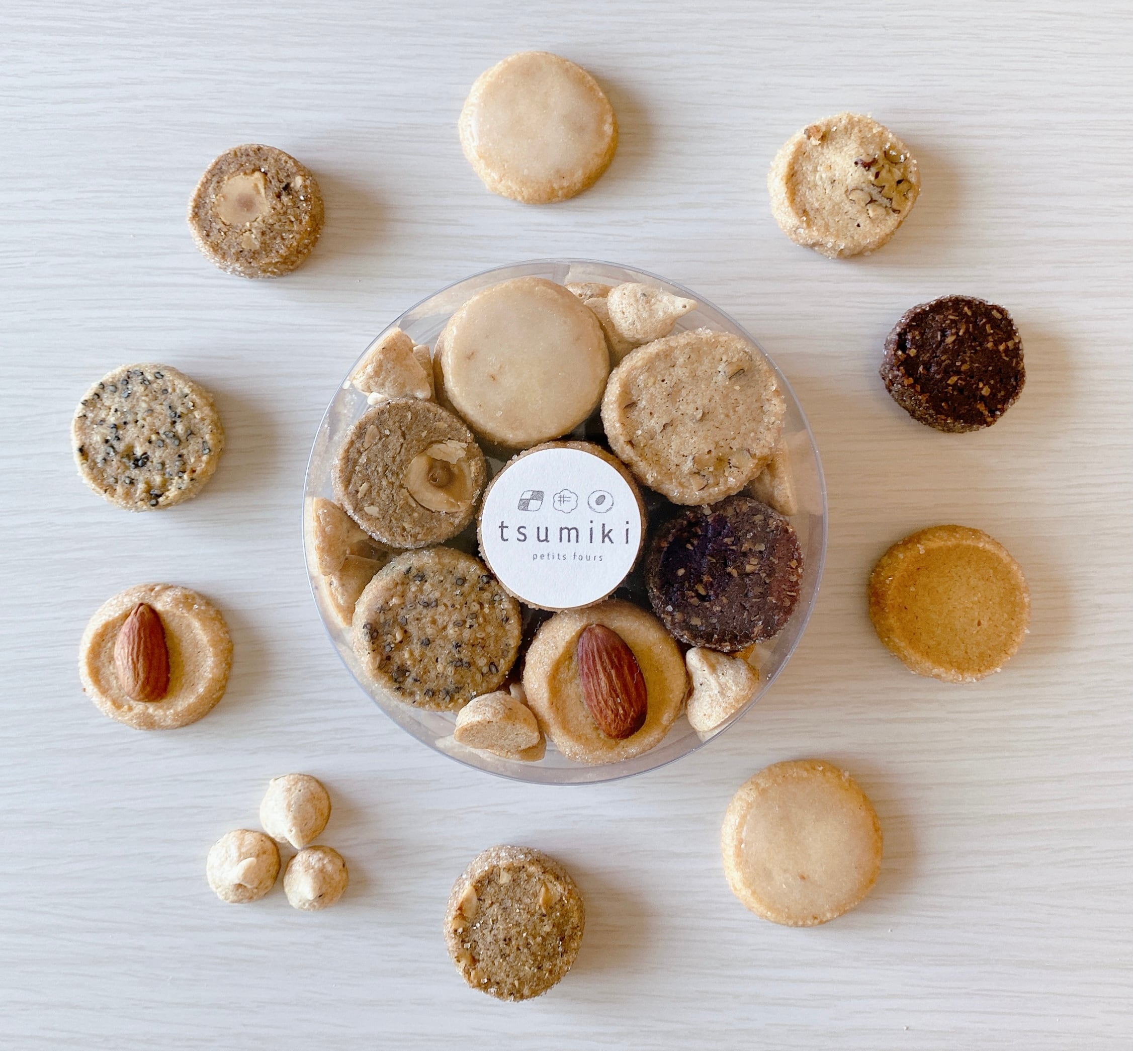 小麦粉、バター、砂糖、卵、ヘーゼルナッツ、粉糖、アーモンド、メープルシュガー、ごま、ココナッツ、くるみ、ココアパウダー、コーヒー、牛乳、バニラ、レモン、塩(一部に小麦、乳成分、卵、ア ーモンド、ごま、くるみを含む)